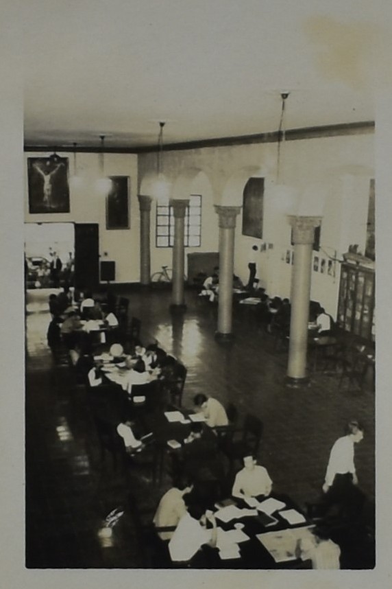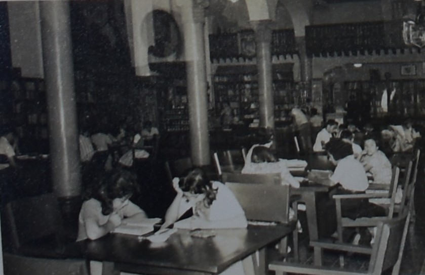Fotos tomada en la década de los 60, en la cual se pueden ver los usuarios consultando los libros y la disposición de las colecciones en la biblioteca de Itagüí actualmente Auditorio Diego Echavarría Misas.
